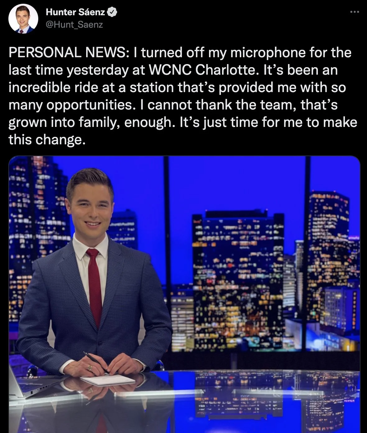 /Is it just a coincidence that WCNC Charlotte) Anchor Hunter Sáenz signed off from the station the very same week that Austin Walker started working there?