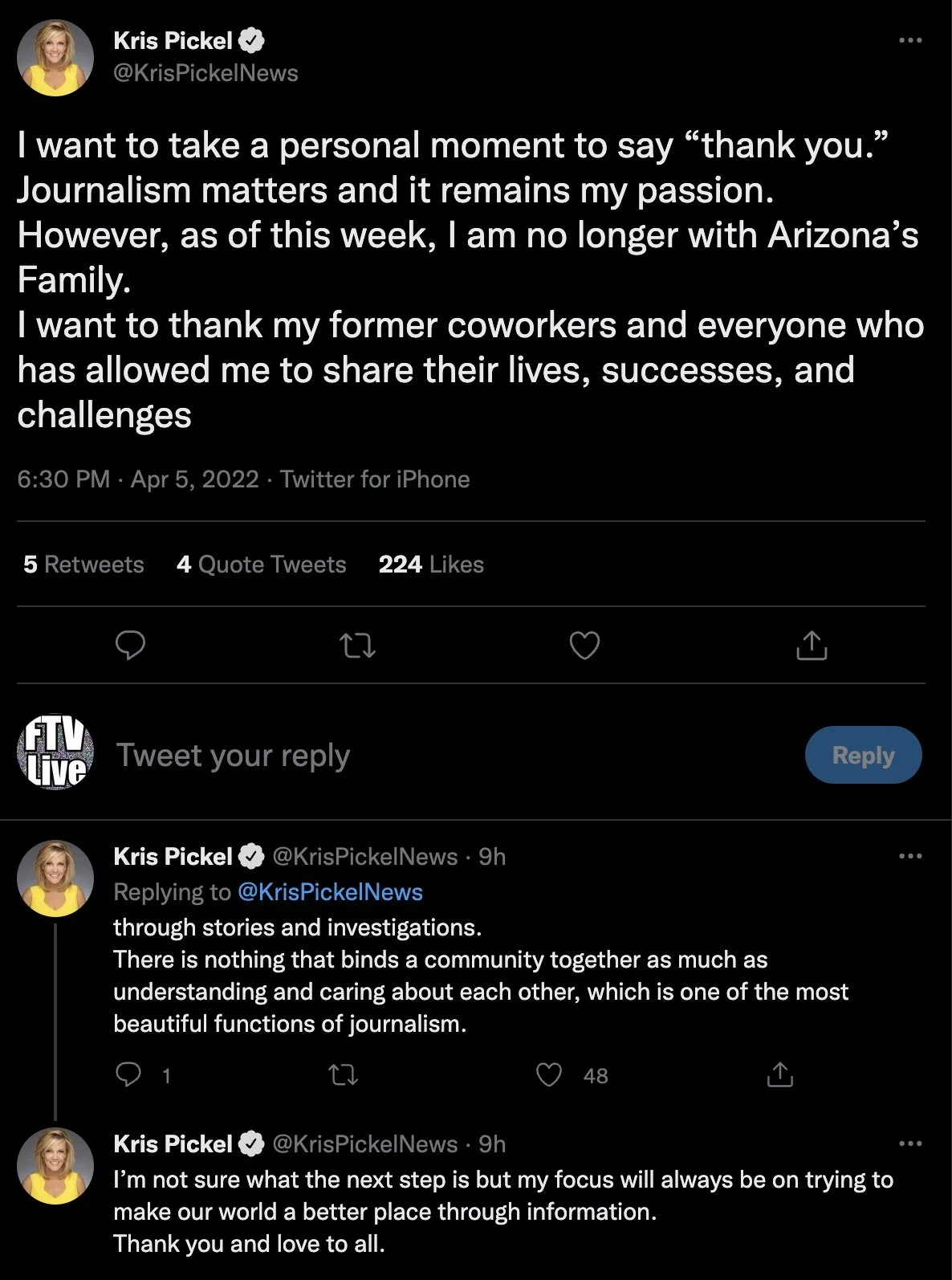 anchor Kris Pickel announced that she is no longer part of Arizona’s family.