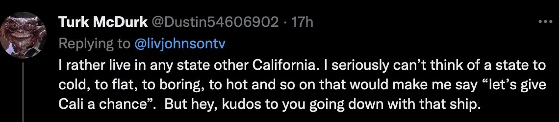 /KSEE (Fresno) Reporter Liv Johnson decided to diss the state of Kansas on her station-branded social media.