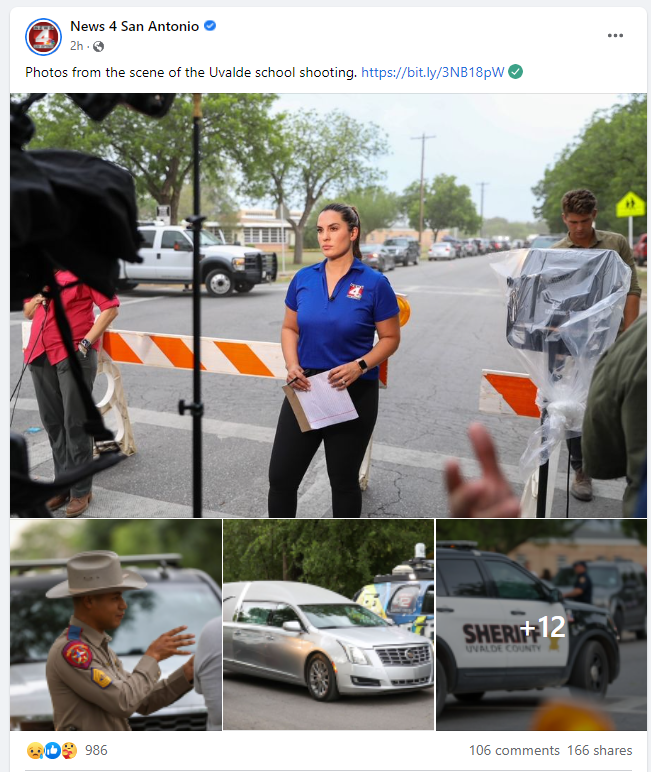 As for market leader KSAT, they teased their coverage of the shooting with a picture chock full of their Reporters with a behind the scenes control room and then filled the post with hashtags.