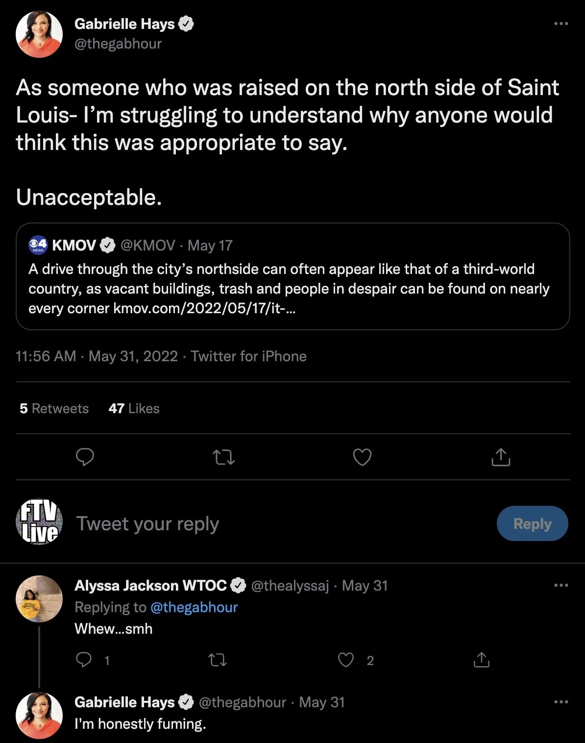 KMOV in St. Louis posted a tweet in which they claim the Northside of St. Louis looks like a “third world country.”