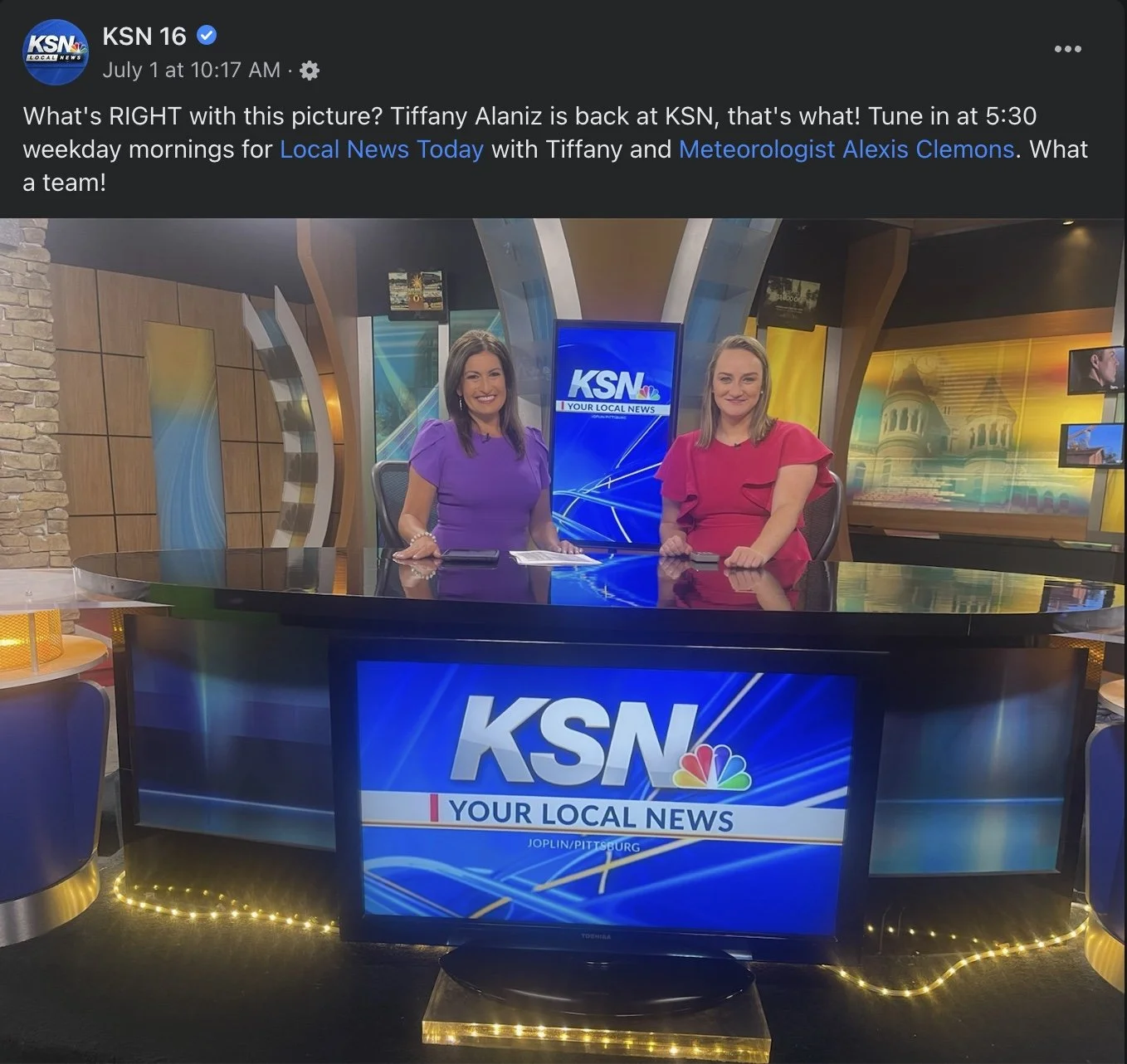 /Tiffany Alaniz left Joplin TV news to take a job at Cox’s KOKI in Tulsa, where she spent a decade.