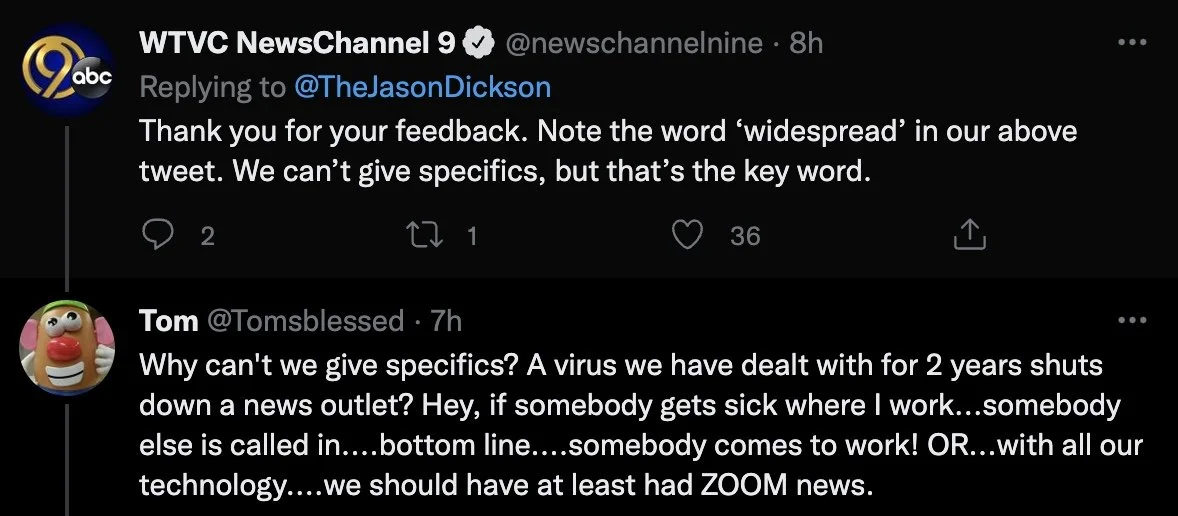 With the pandemic still very much still making people sick, you would think that all stations would have a plan in place with remote locations and employee backup plans, so you would never have to cancel a newscast.
