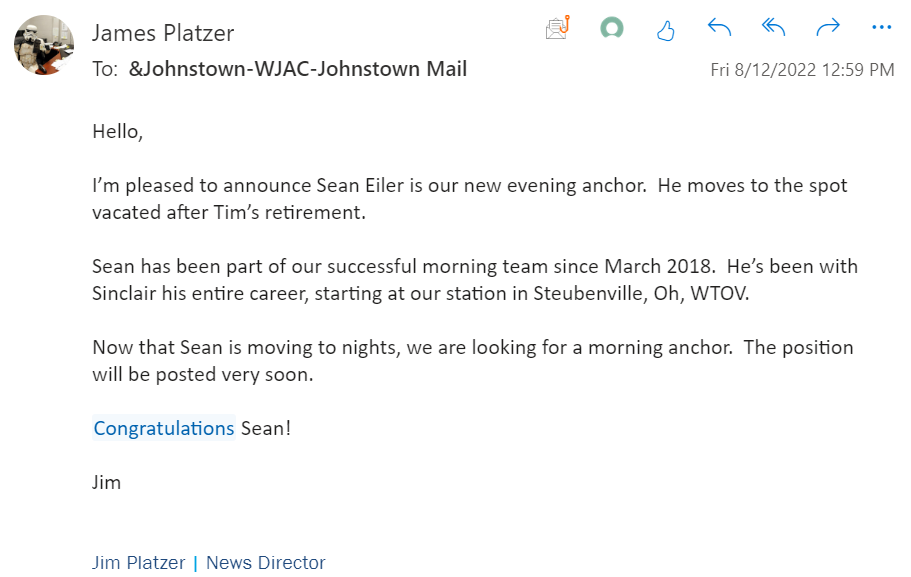 Might be time to update the website that still has him listed as the Morning Anchor.
