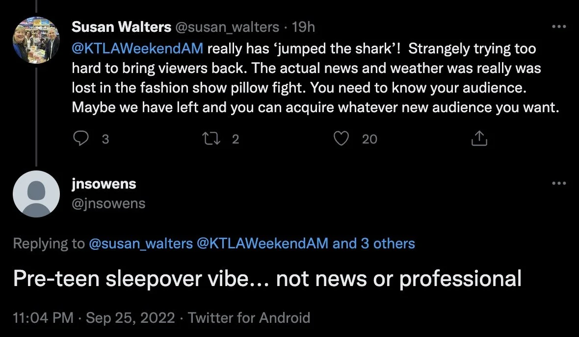 /KTLA management knows that the viewers are growing tired of all the changes and the crap that has been going down at the station.