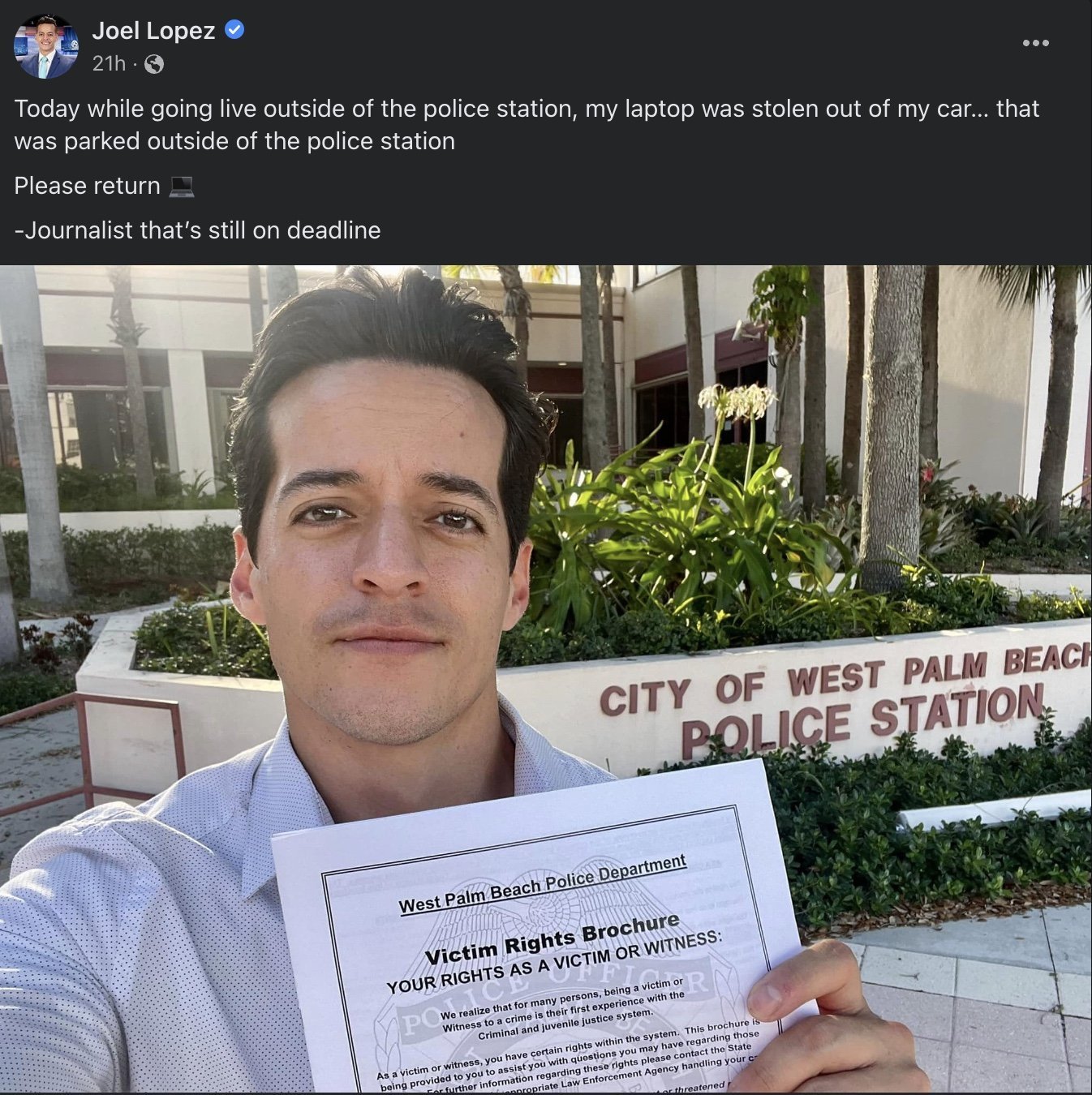 /You may remember last week, FTVLive told you that WPTV Reporter Joel Lopez went and filed a police report after he said his laptop was stolen.