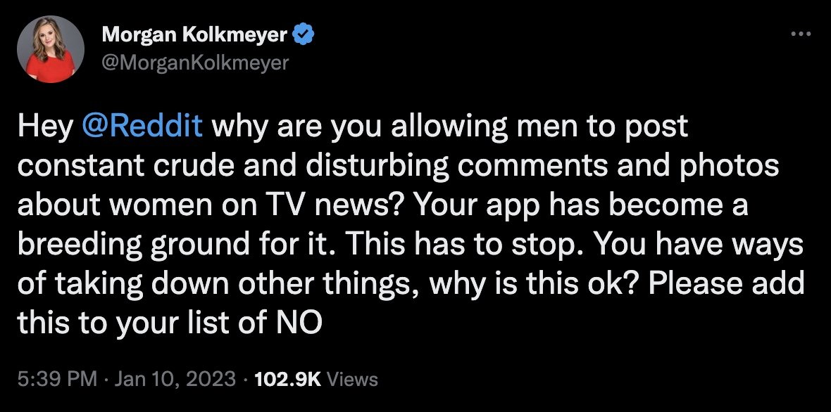 Now, she is trying to have some TV news people’s backs and is calling out Reddit on social media.