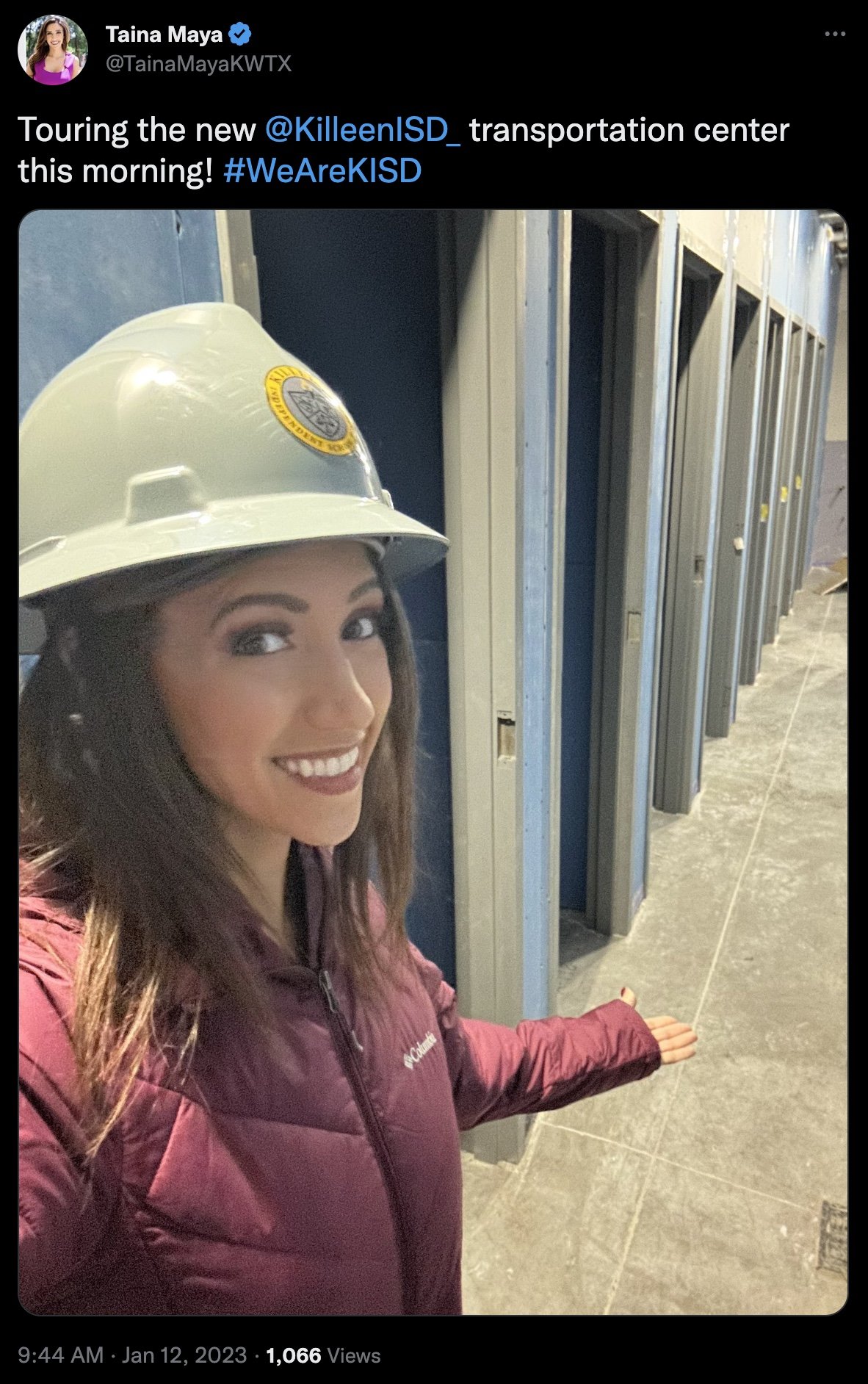 But look at her Twitter handle and it says @TainaMayaKWTX