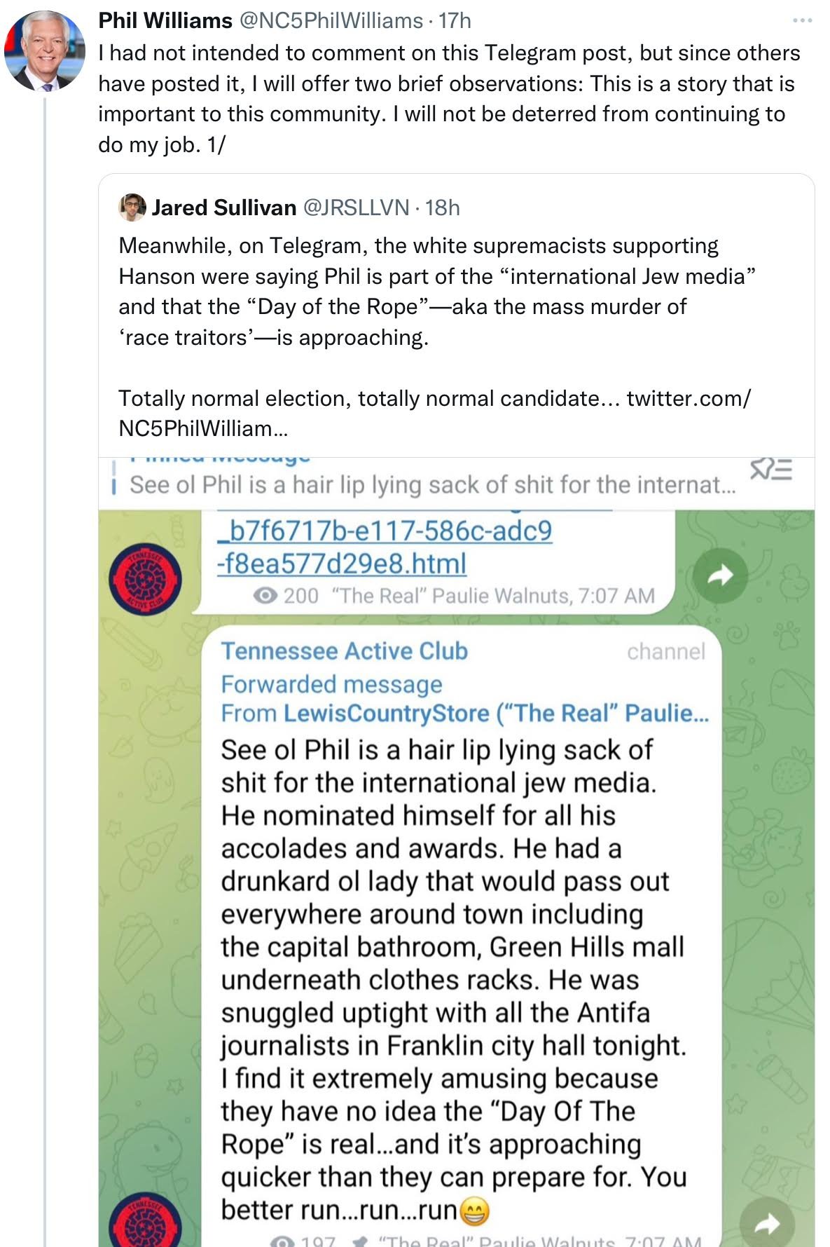 /WTVF (Nashville) Reporter Phil Williams did a story on a mayoral candidate supported by white supremacists.