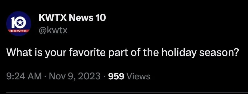 November 10, 2023 Way Too Early... November 10, 2023/ Scott Jones I’m sorry, but it is waaaaay too early to be pulling out the holiday filler posts.