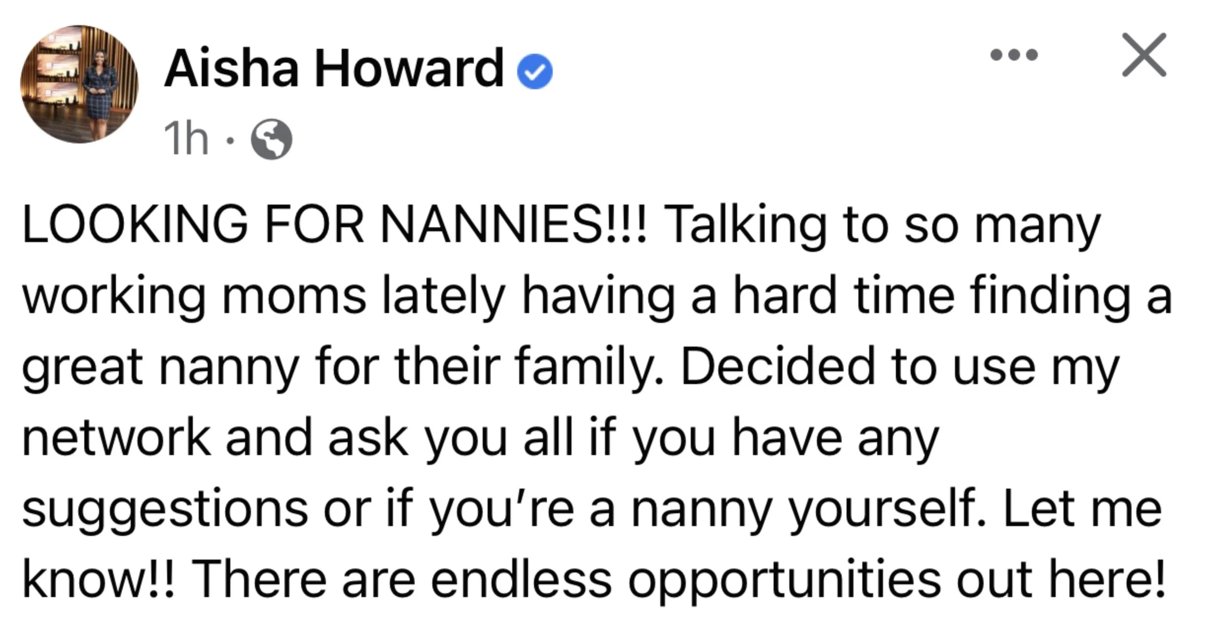 /WXIA (Atlanta) Anchor Aisha Howard is using social media to try and find a nanny.
