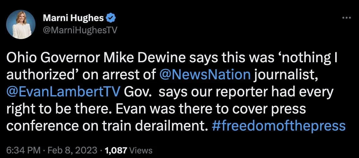 /A NewsNation reporter was arrested Wednesday during a news conference being held by the Ohio governor about a train derailment that released toxic chemicals.