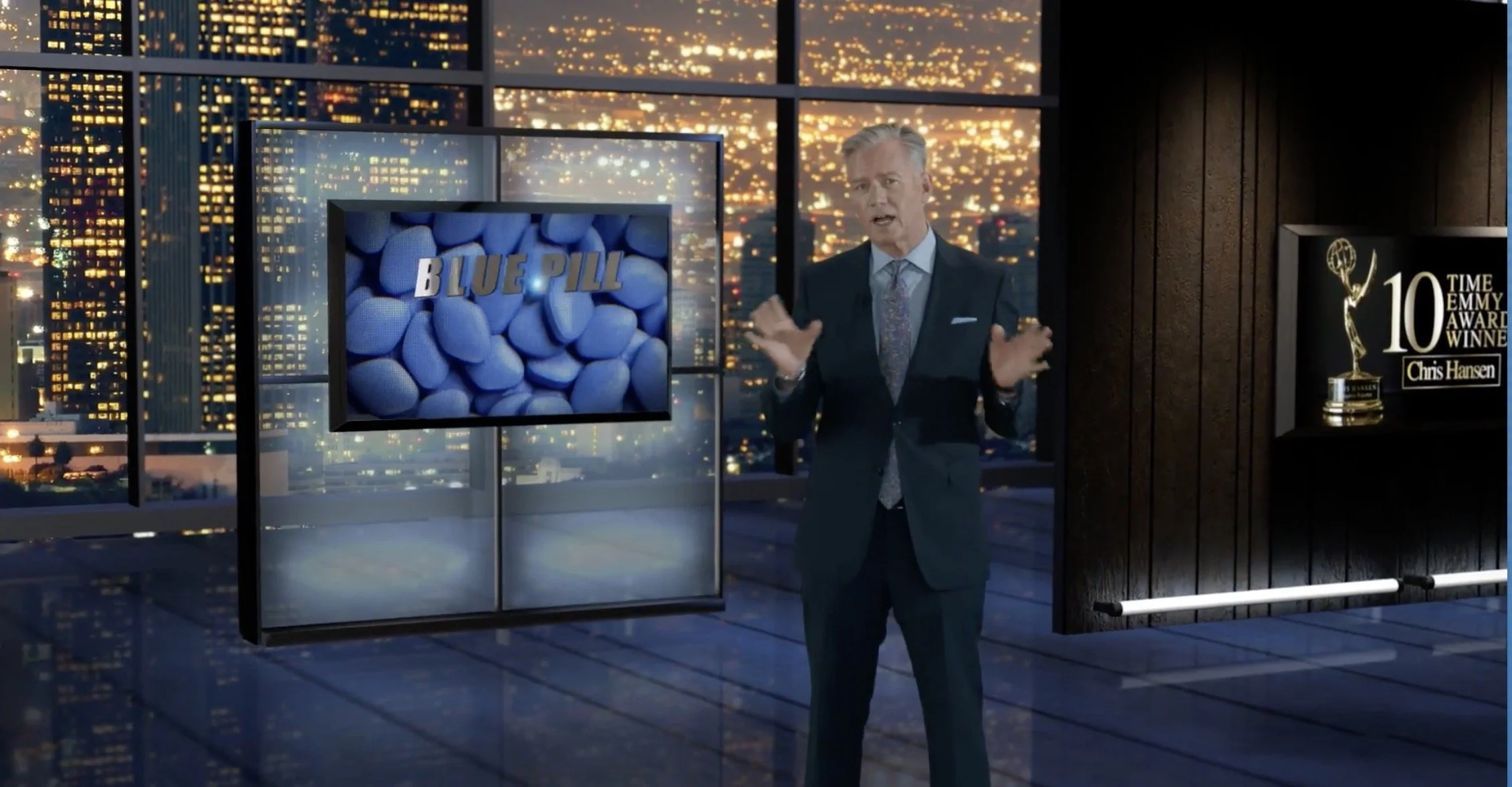 /Former NBC Dateline star Chris Hanson is now pimping pills for erectile dysfunction.
