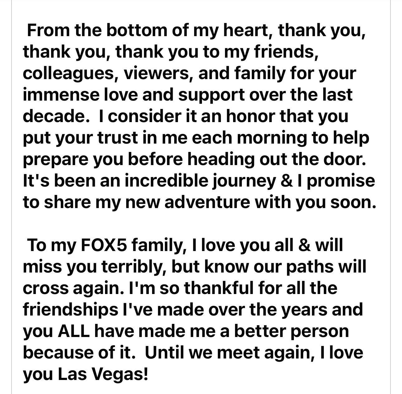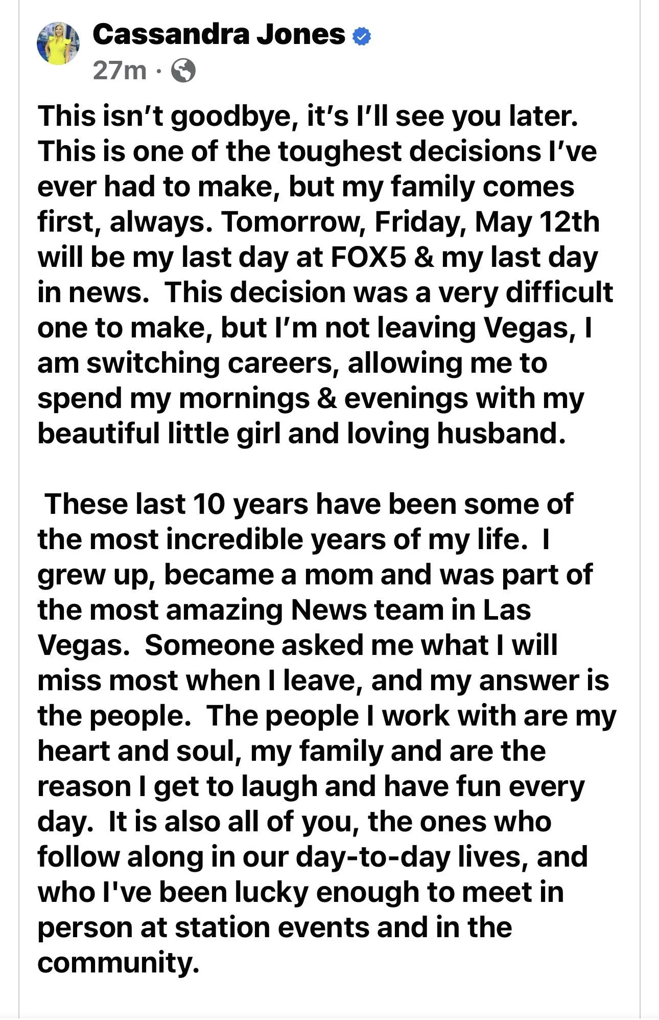 /after a decade at KVVU (Las Vegas), Meteorologist Cassandra Jones is leaving the Gray station and the business altogether.