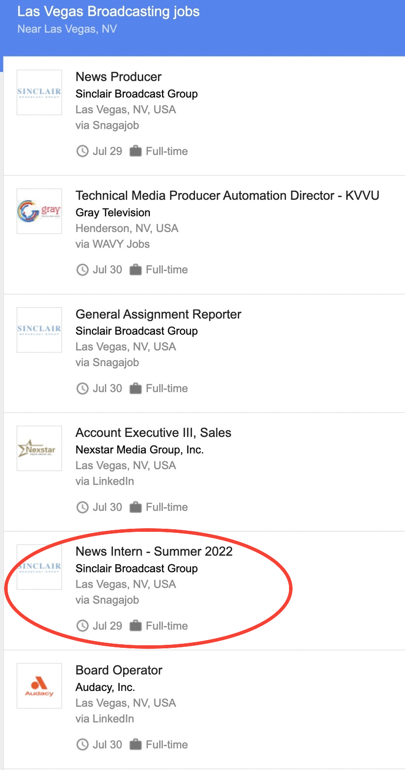 /FTVLive came across some recently posted jobs in the Las Vegas market.