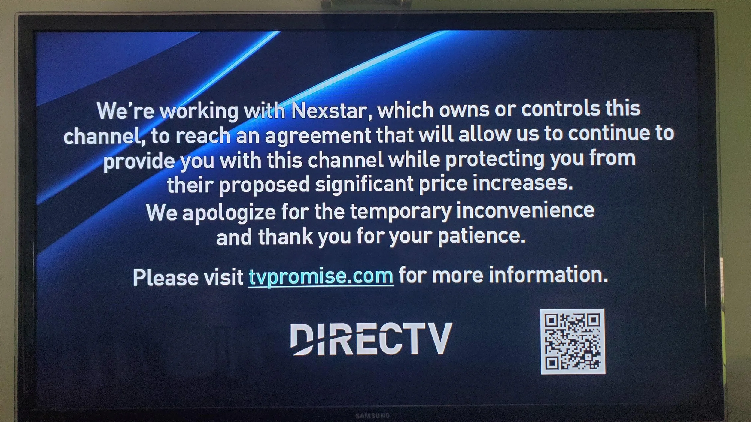 /As you likely know, Nexstar is in a retrans pissing match with DirecTV and it has been going on for over a month.