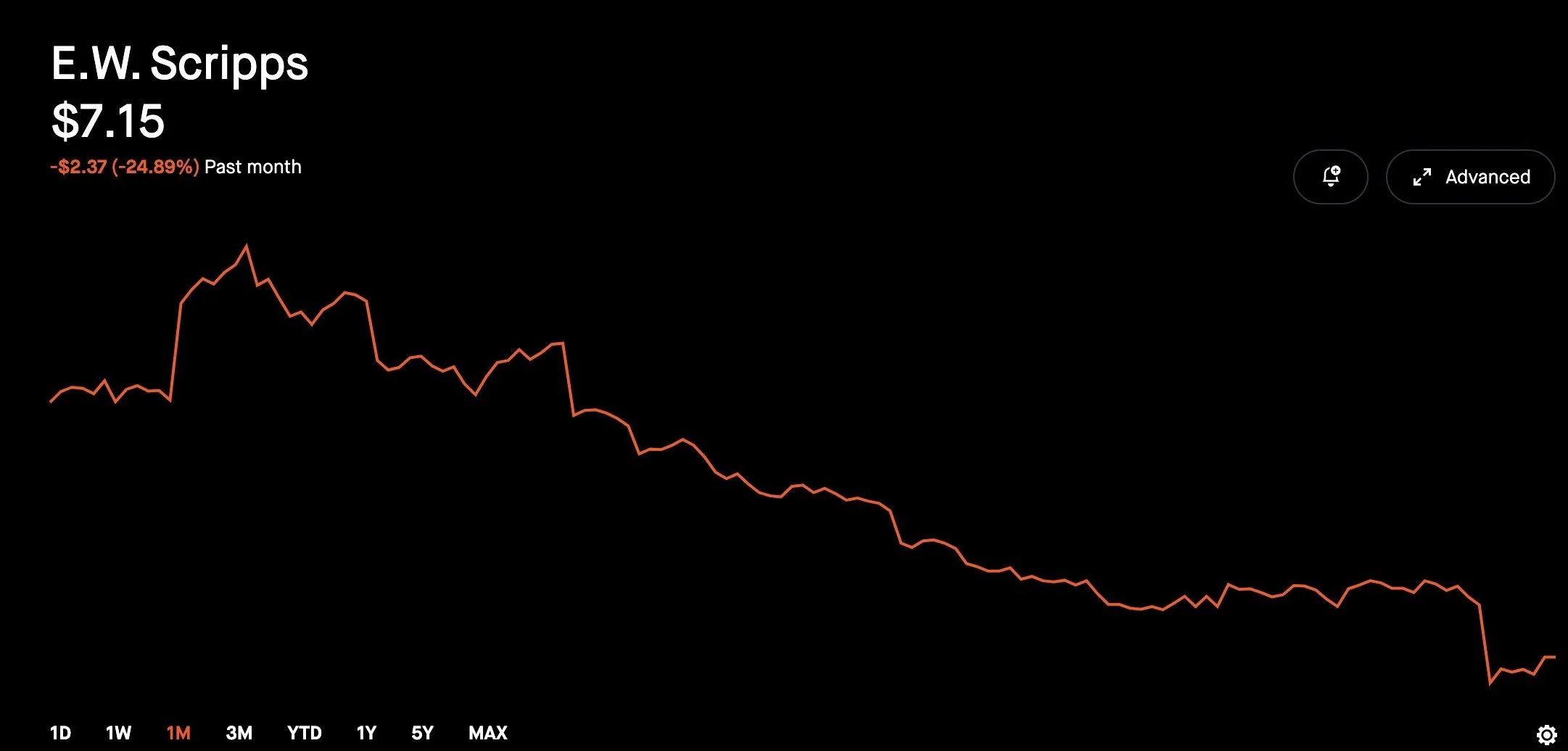 The chart above is the Scripps stock price over the past month.