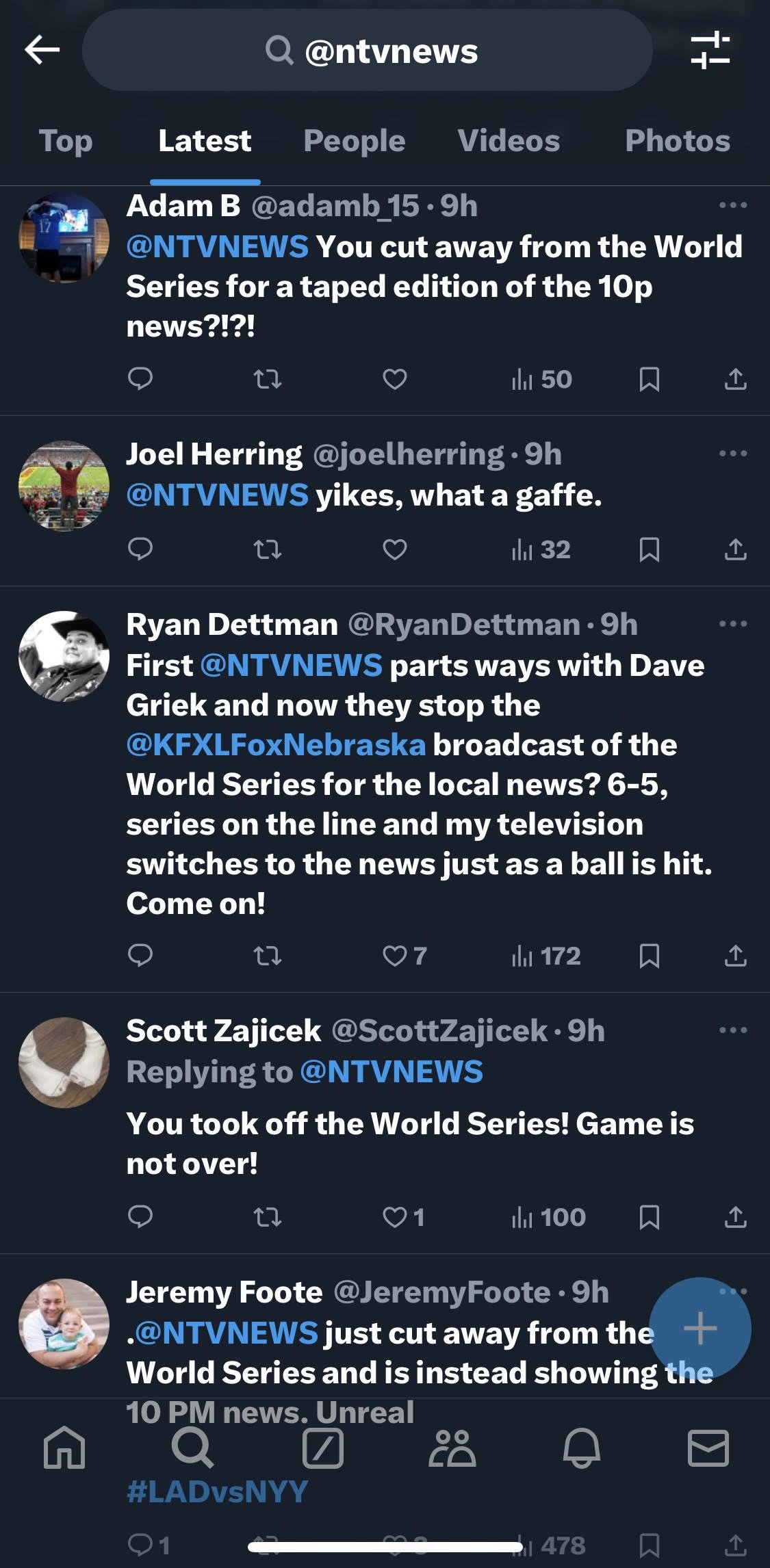 As the World Series was at a crucial point as the LA Dodgers were about to take the lead, Sinclair’s NTVNews Nebraska Television Network) automation cut away from the game and started showing a taped newscast.