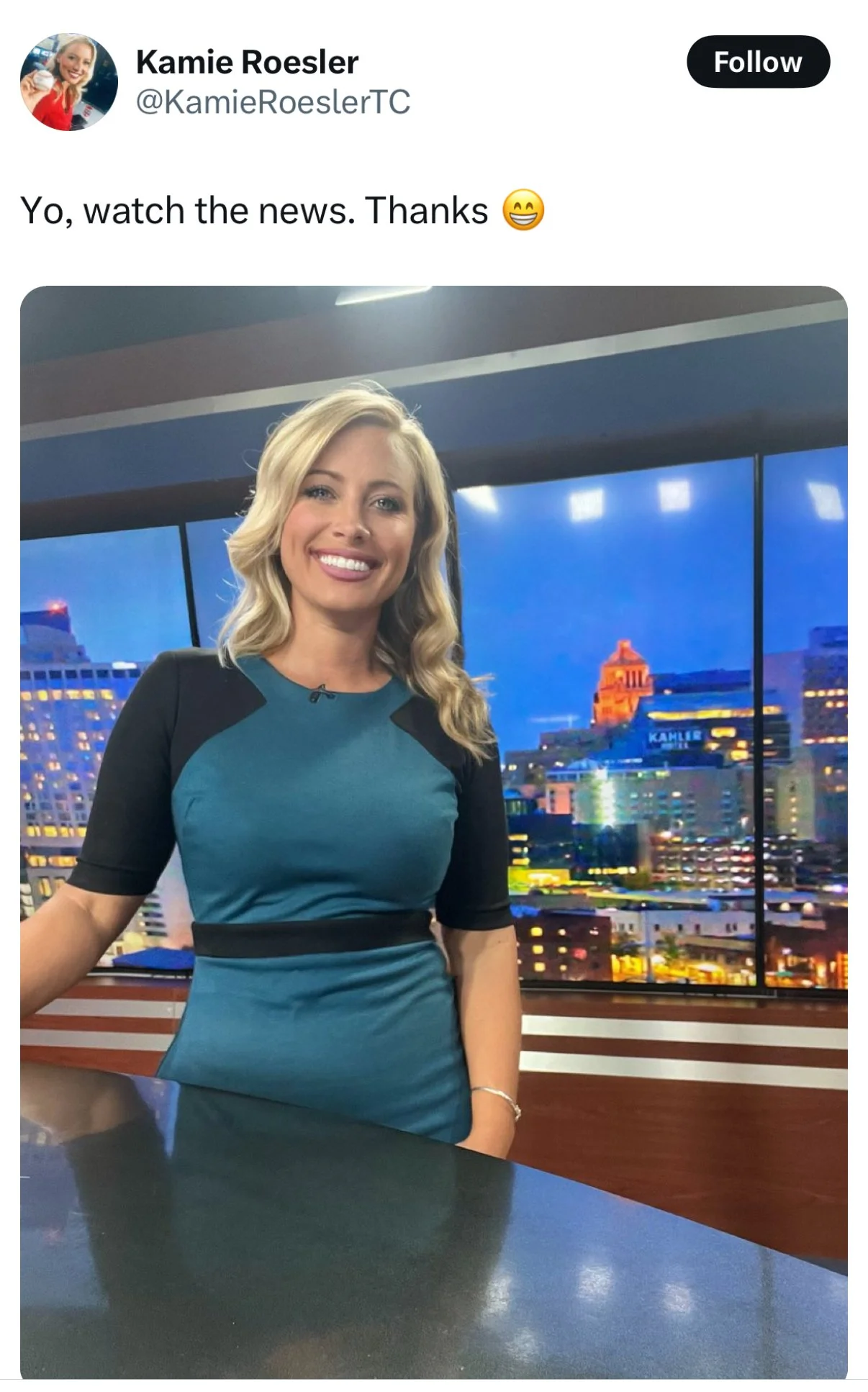 KIMT Anchor Kamie Roesler tells viewers, “Yo, Watch the News…”