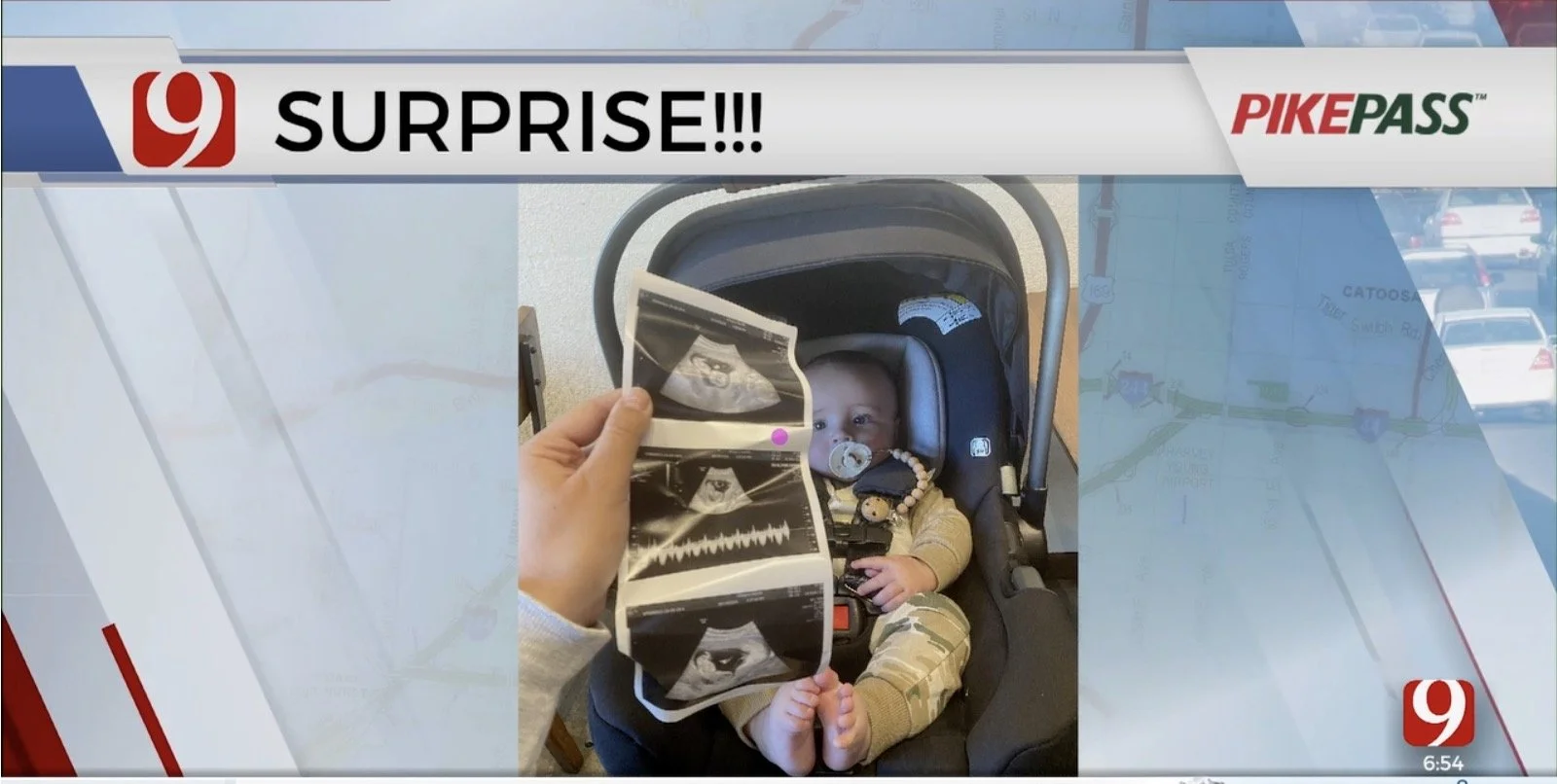 /Less than a month ago, KWTV (Oklahoma City) was taking time out of the newscast to announce the second pregnancy of meteorologist Hannah Scholl (screenshot above)