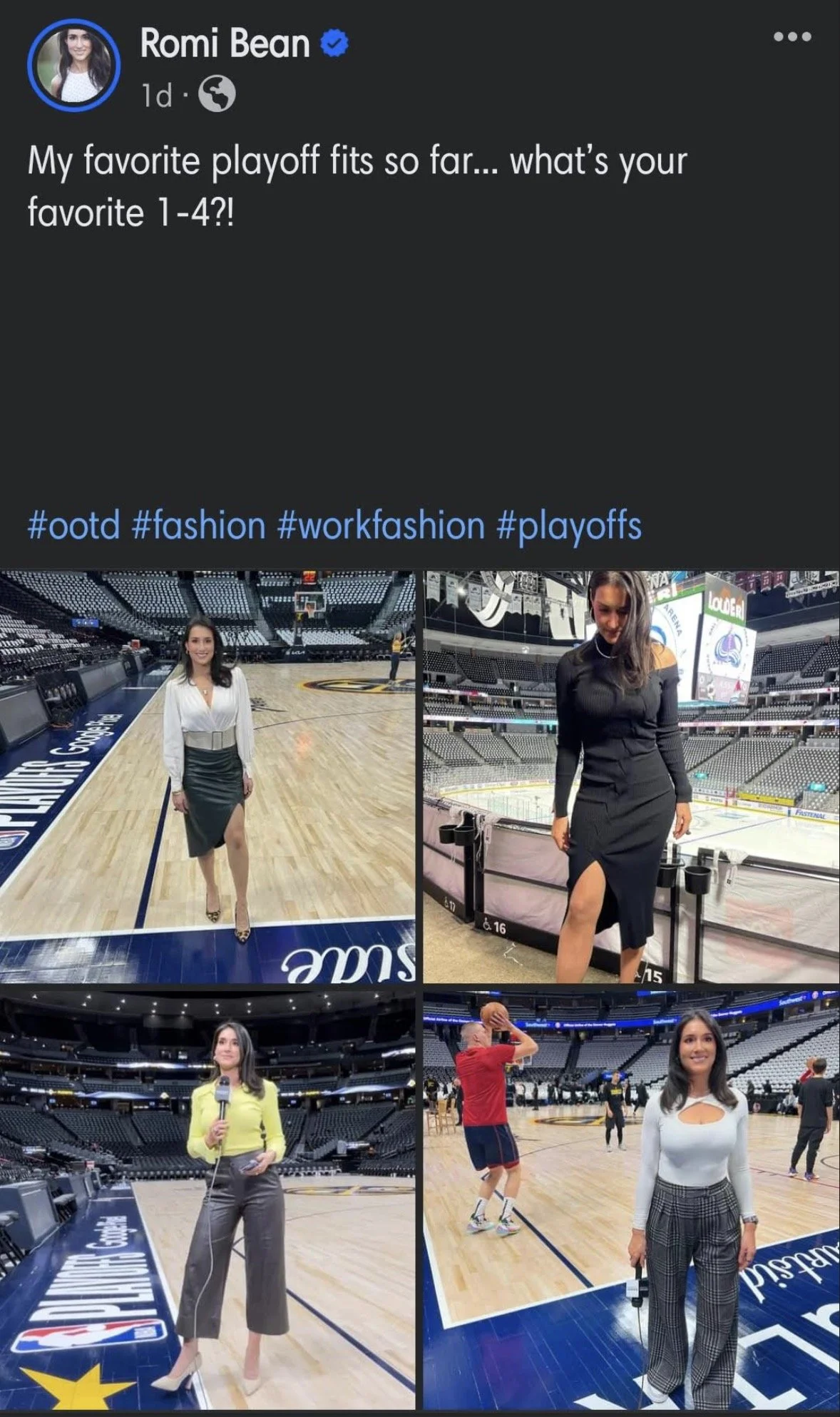 But, KCNC Sports Reporter Romi Bean doesn’t want the team to get all the attention, so, she tried to bring the attention back to herself.