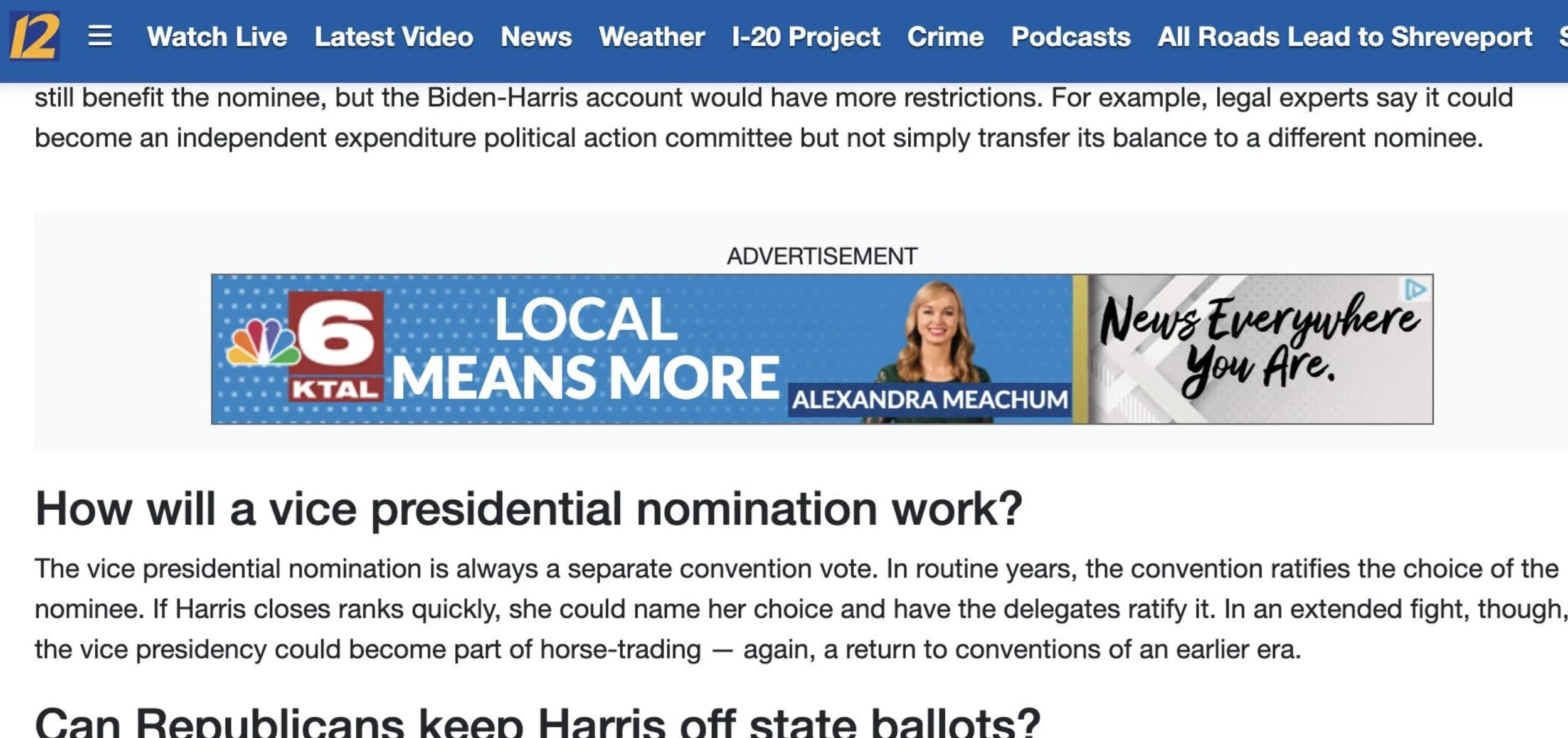 It appears that KTAL (Shreveport) purchased some Google ads, and they are popping up on competitor KSLA's website.