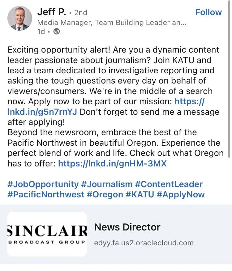 /Sinclair has posted a job for a News Director which the company claims will “lead one of the strongest local newsrooms in the country.”