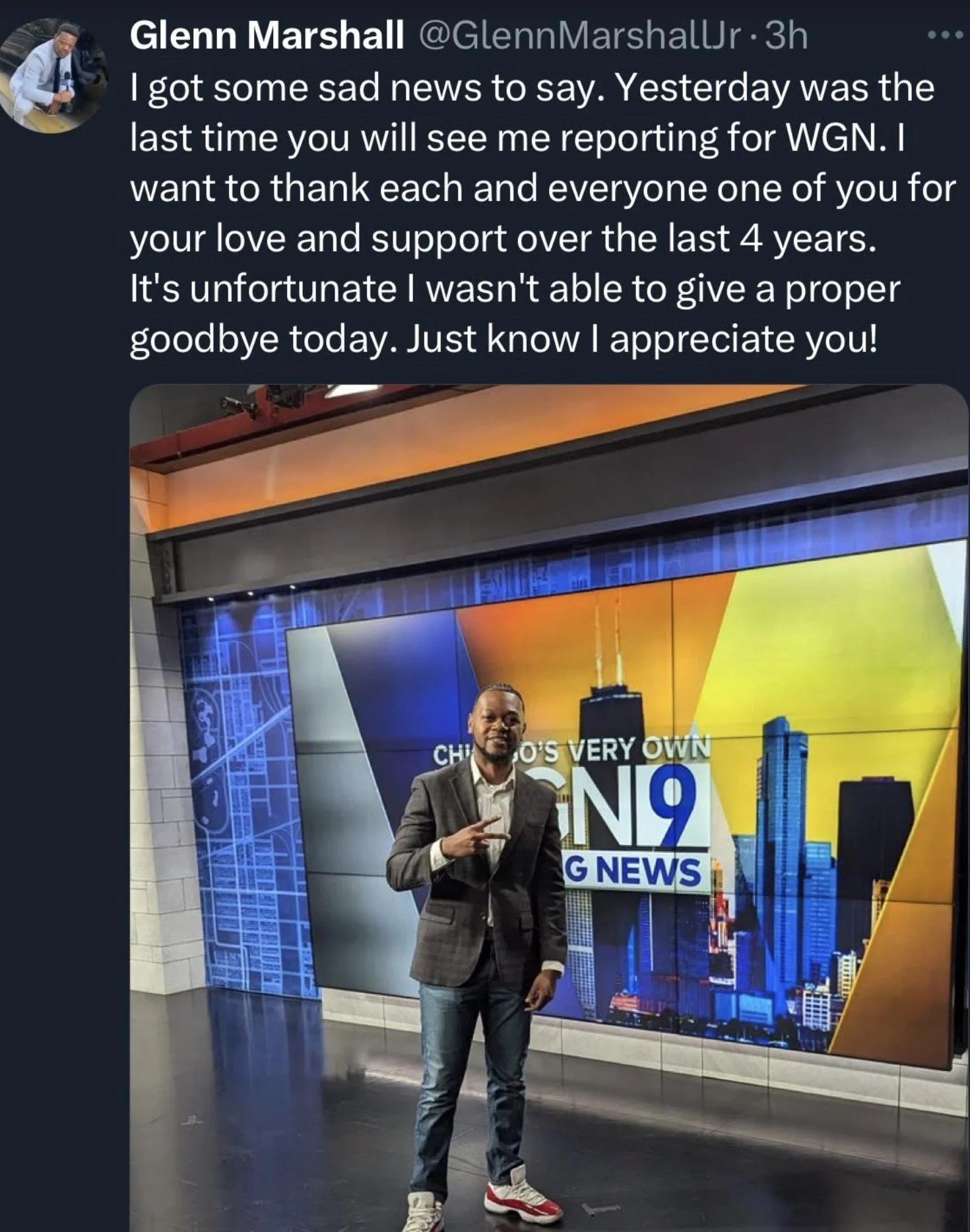 /It appears that WGN Reporter Glenn Marshall has left WGN, and reading between the lines of his post, it doesn’t sound like this was an amicable parting of the ways.
