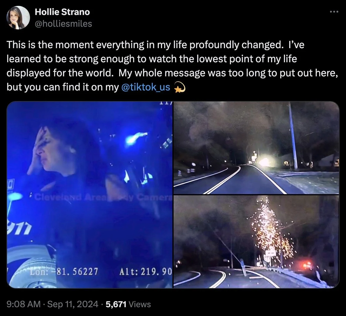 I will point out that using police body cam pictures of you being arrested and scenes from you driving drunk and crashing your car, just to push people to your TikTok is a new low.