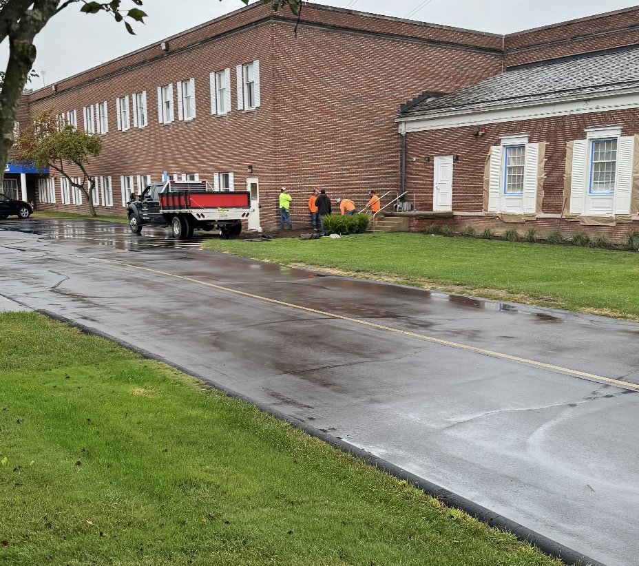 The story had pictures from Scripps-owned WXYZ in Detroit. The photos showed painters working outside in the rain, painting the building. Landscapers, were putting in new plants in the rain. Trees that had been on the property for years were being taken down.