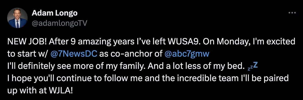 /In that story, FTVLive wrote, “Sources tell FTVLive that Longo is crossing the street to Sinclair’s WJLA. We hear that he will become the morning Anchor at WJLA, taking the position of Robert Burton, who left to sell stuff on social media.”