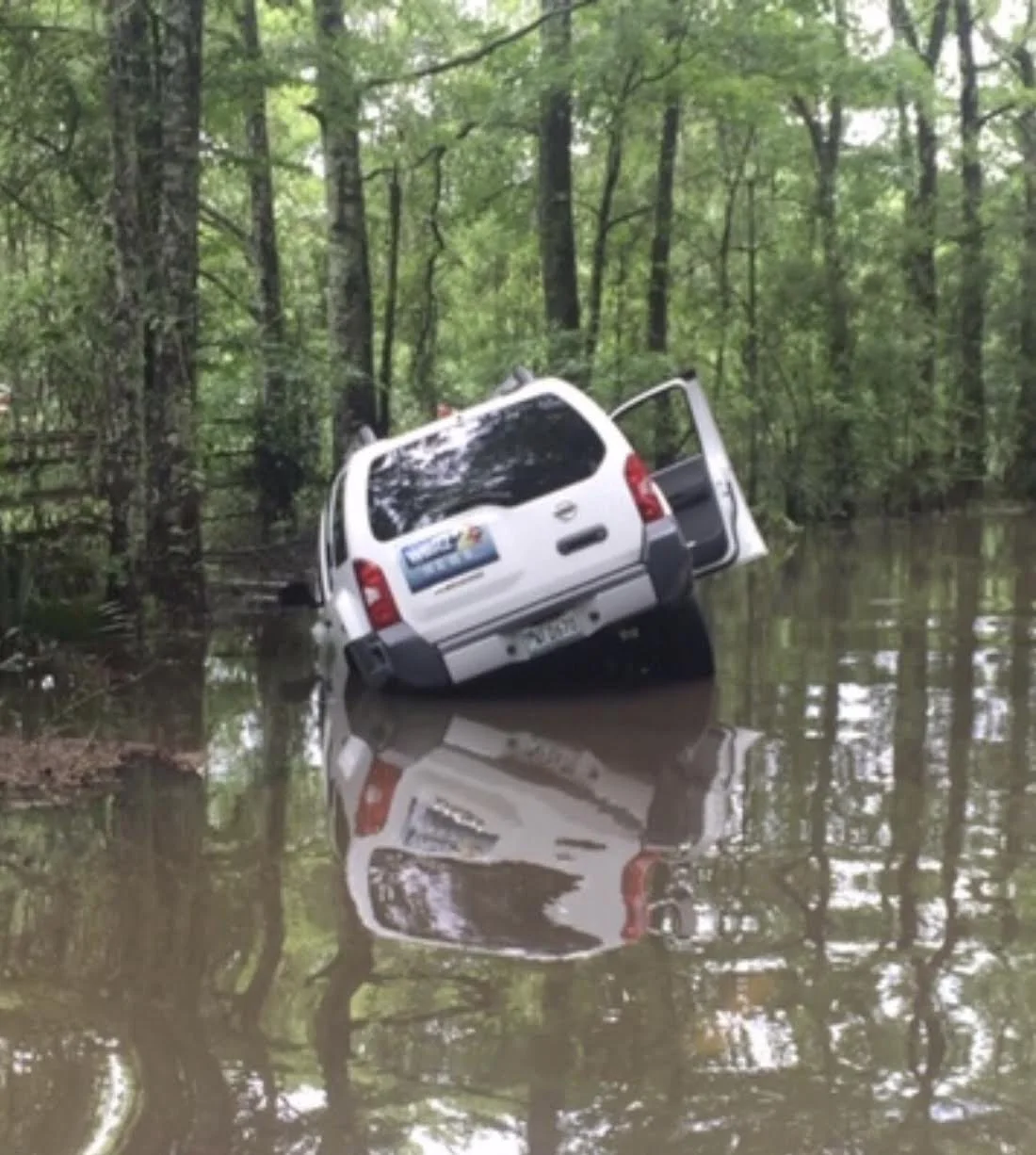 Here’s hoping that their driving skills have improved since Tropical Storm Imelda, when their news car was a bit wet.