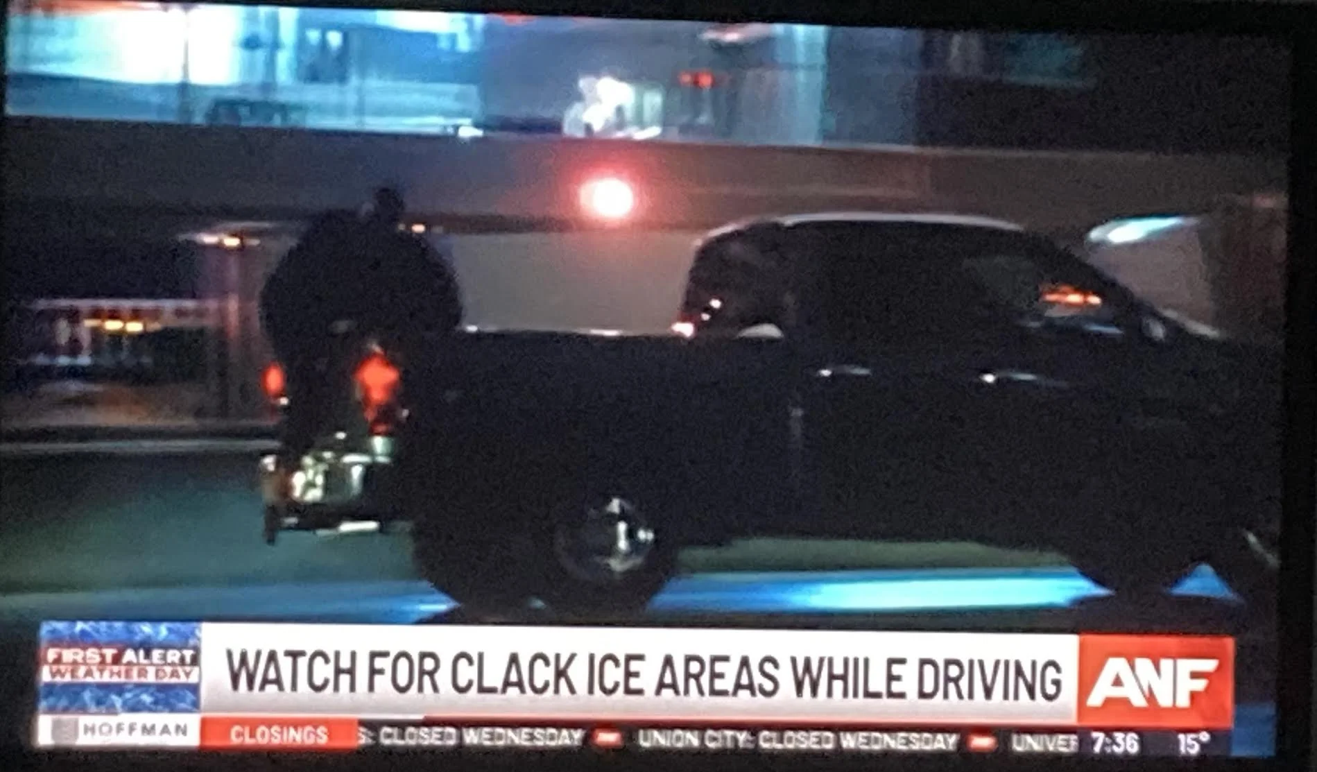/Gray’s WANF (Atlanta) warned viewers about the dangers of “Clack Ice.”