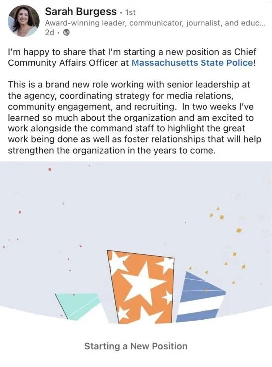 Burgess has landed a new gig and it’s not in a newsroom. She’s at the cop shop.