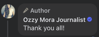 Mora responded with a thank you.