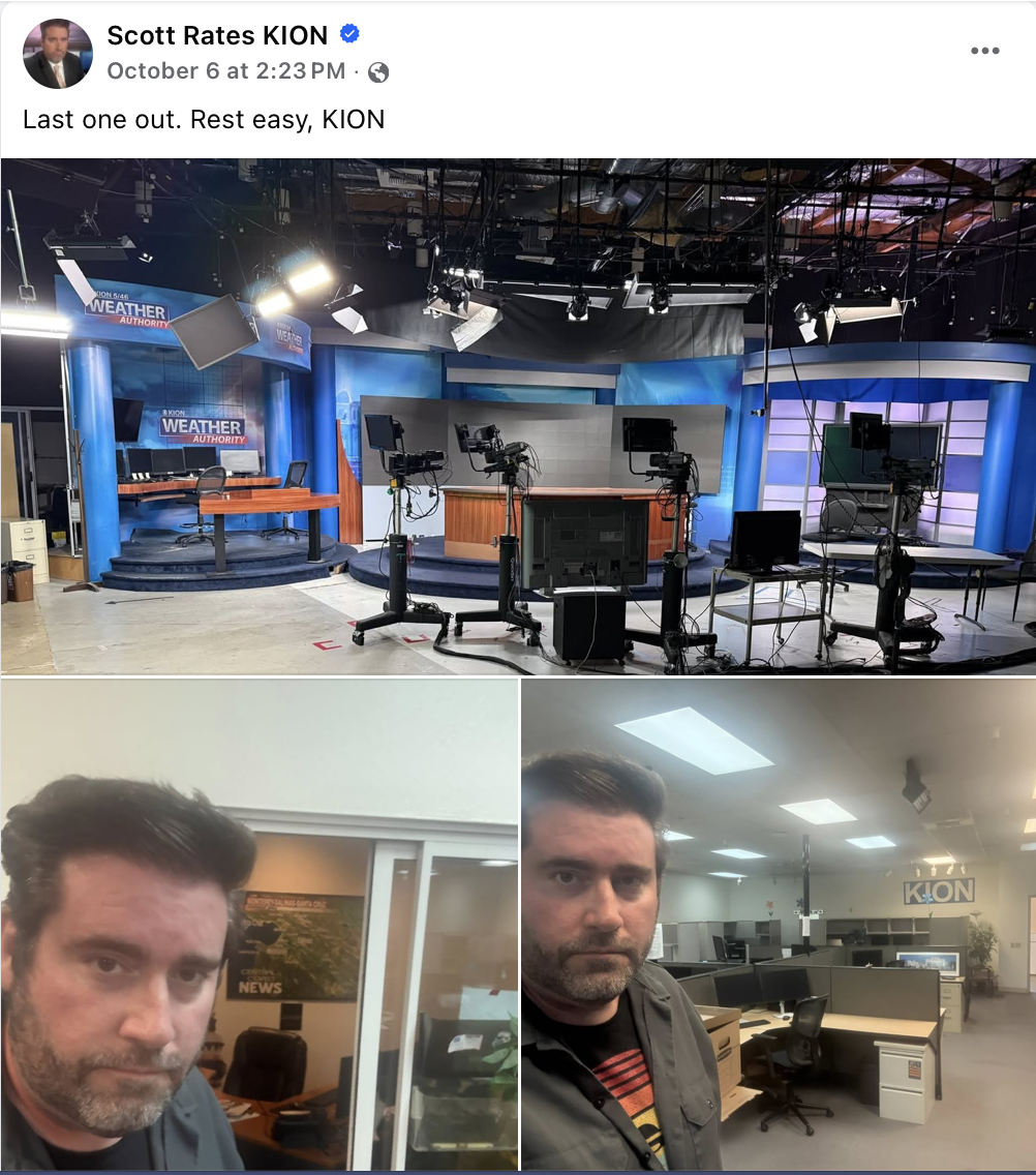 /Last month, FTVLive told you that News-Press & Gazette (NPG) abruptly shut down the news operations at KION-TV, its CBS affiliate on California's Central Coast, after 56 years on the air. The decision was effective immediately, leaving journalists in the middle of their workday without a newsroom.