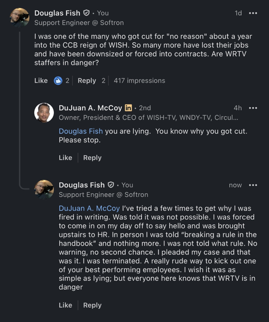 Here’s a former WISH employee making a post and getting trolled by McCoy.
