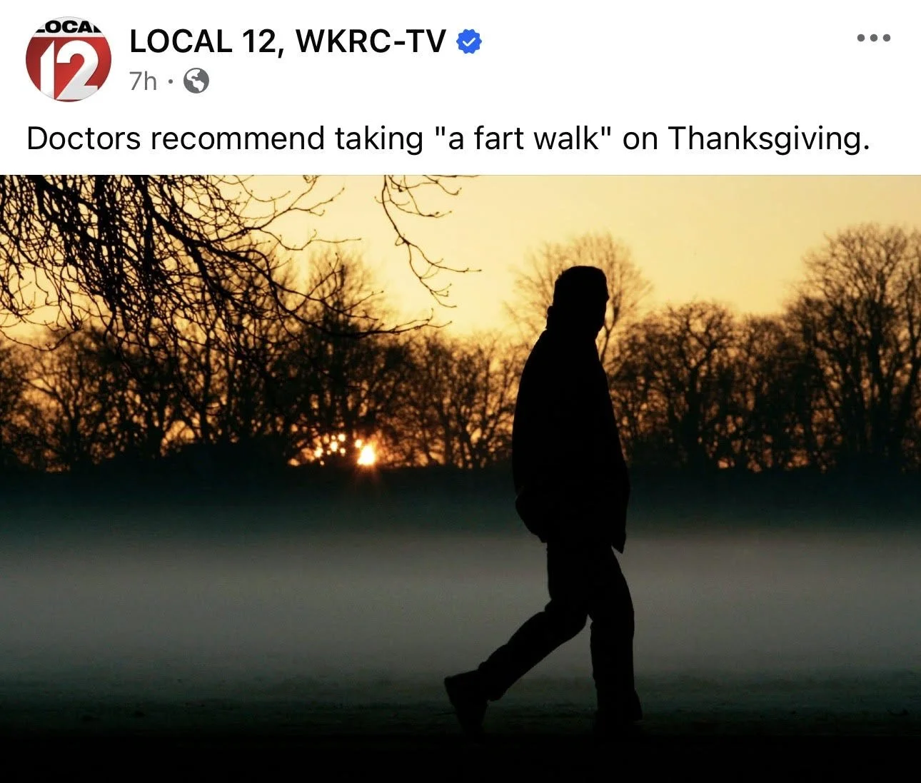 /Sinclair’s WKRC in Cincy posted a story telling viewers they should take a “fart walk” on Thanksgiving.