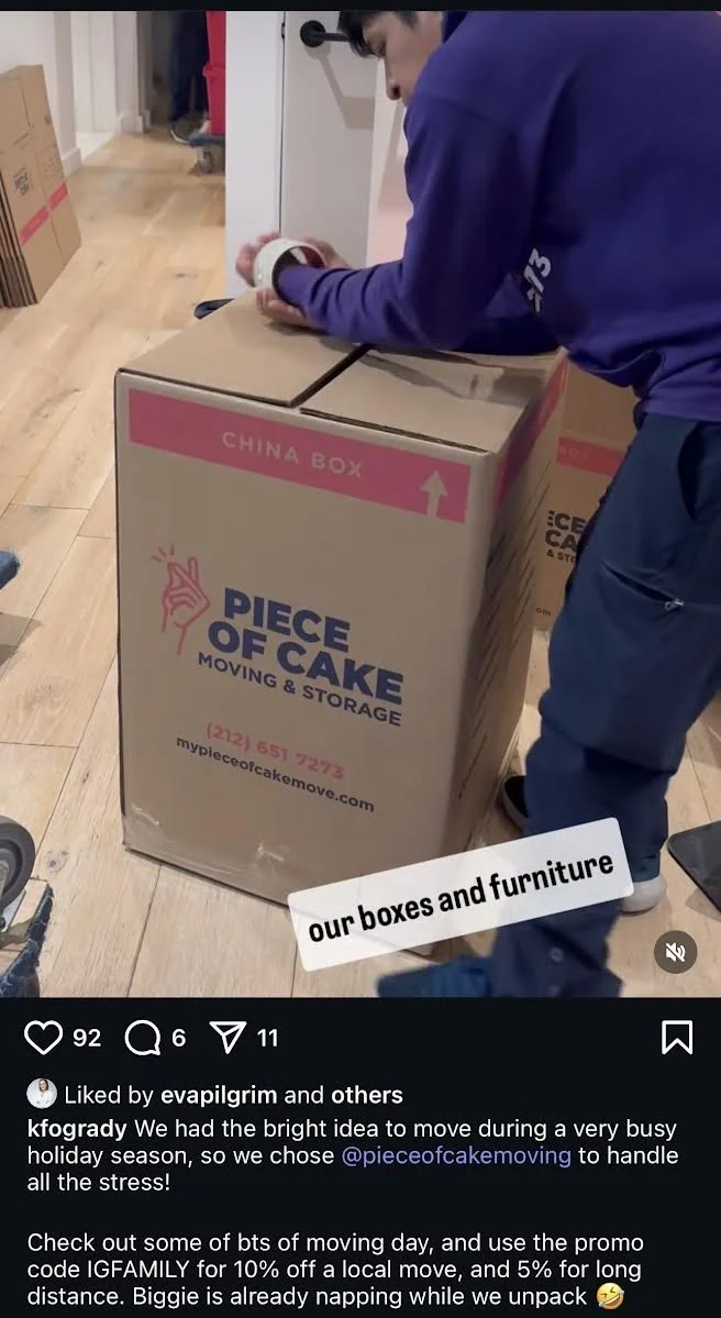 CBS News Correspondent Kelly O'Grady is moving and she plugs the moving company and offers up a discount code to boot.