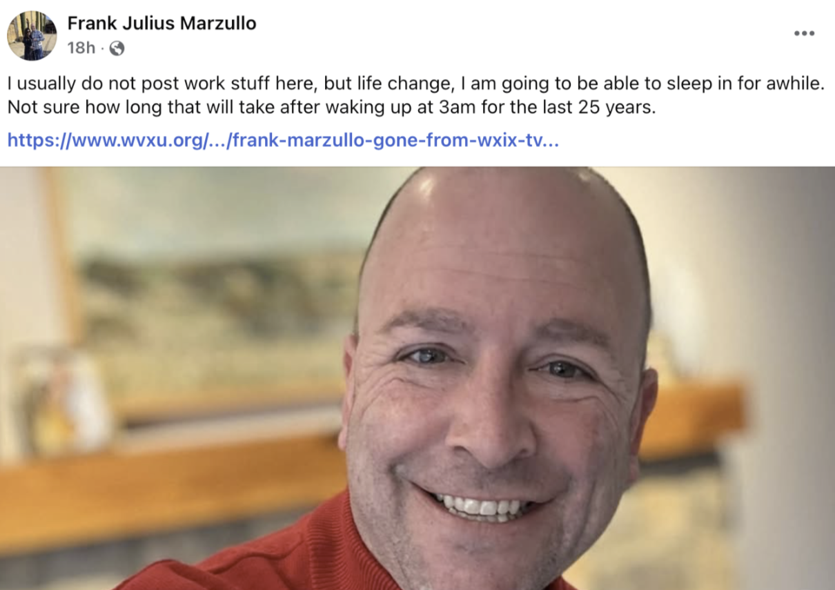 “I wanted to let everyone know that Frank Marzullo has decided to leave Fox 19 effective today to pursue other opportunities. Frank has been a leader in the news department for over 18 years and I would like to thank him. I certainly wish Frank well in his future endeavors and thank him for everything he’s done at Fox 19,” said Jennifer Riefer in a memo to to the staff.