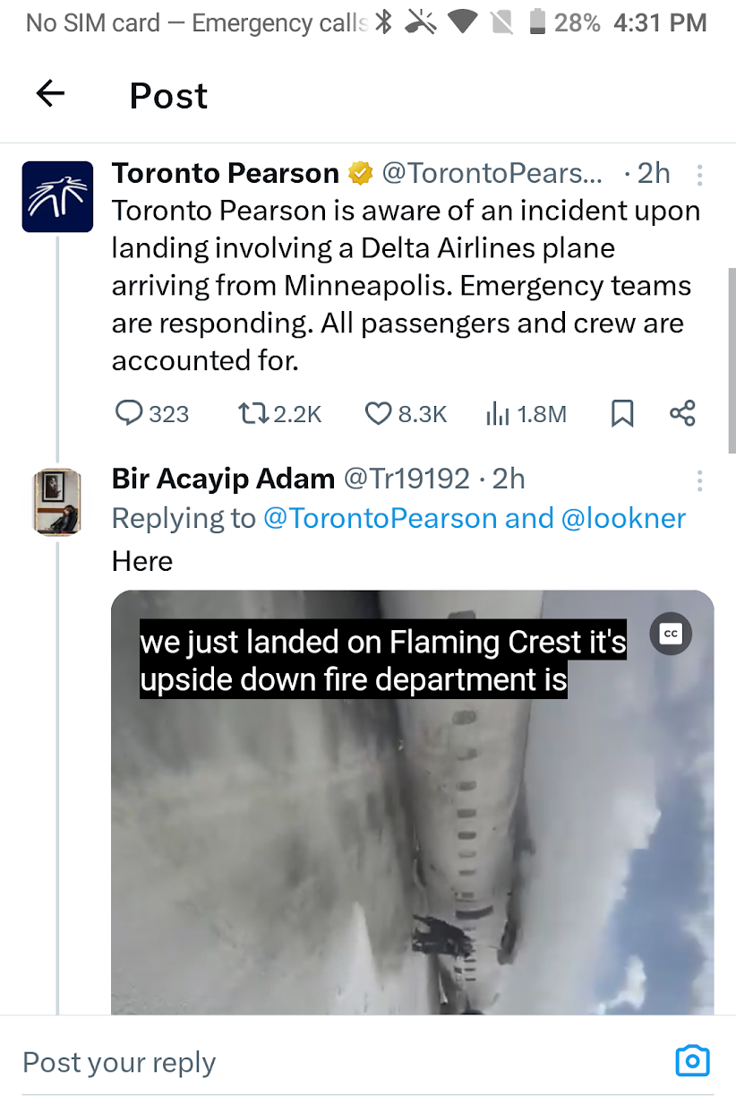 /A plane crashed in Toronto and flipped over, and one person posted pictures just after it happened.