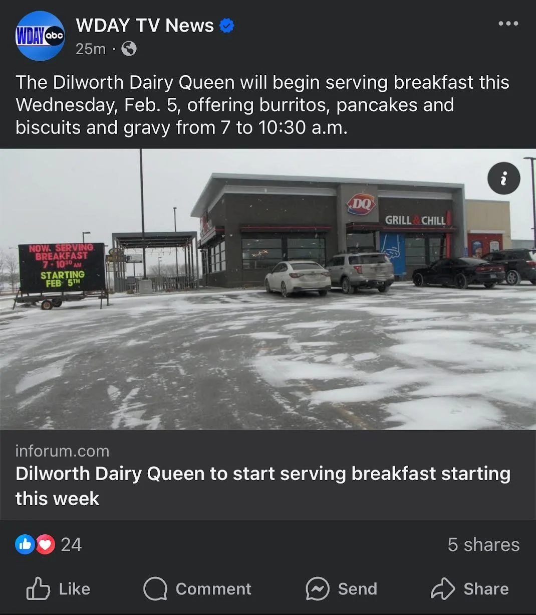 February 05, 2025 Why? February 05, 2025/ Scott Jones Is WDAY (Fargo) going to list all the places serving breakfast, or was this an ad?