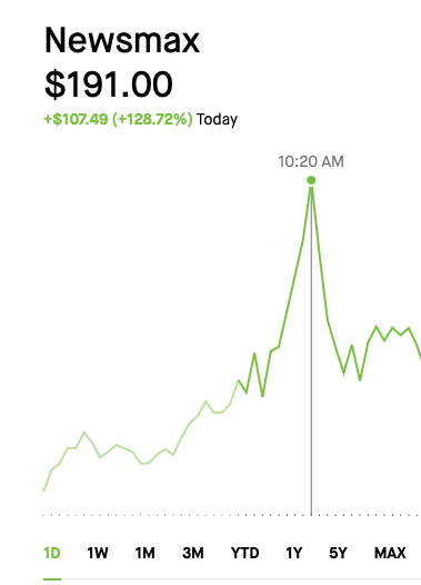 The MAGA folks were able to pump the stock up, but I don’t think it will be long before they dump it. Just as an FYI, NewsMax lost $72 million dollars last year.
