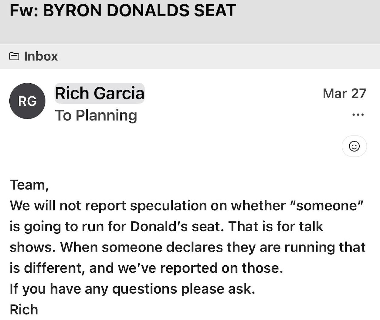 Here’s another internal email that Garcia sent out of Friday.