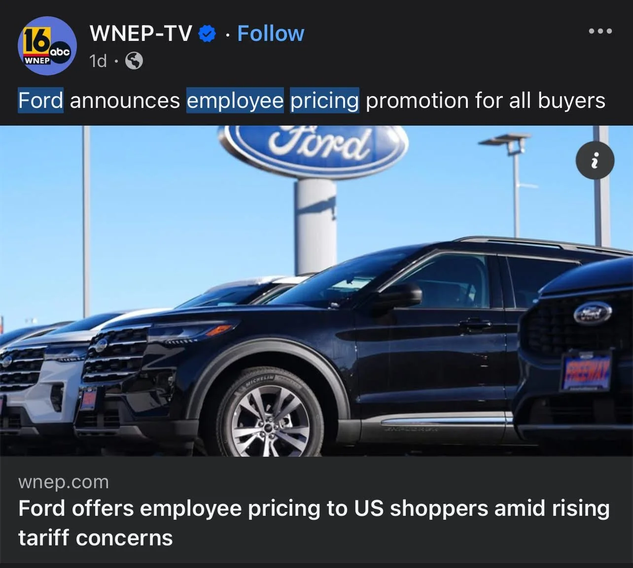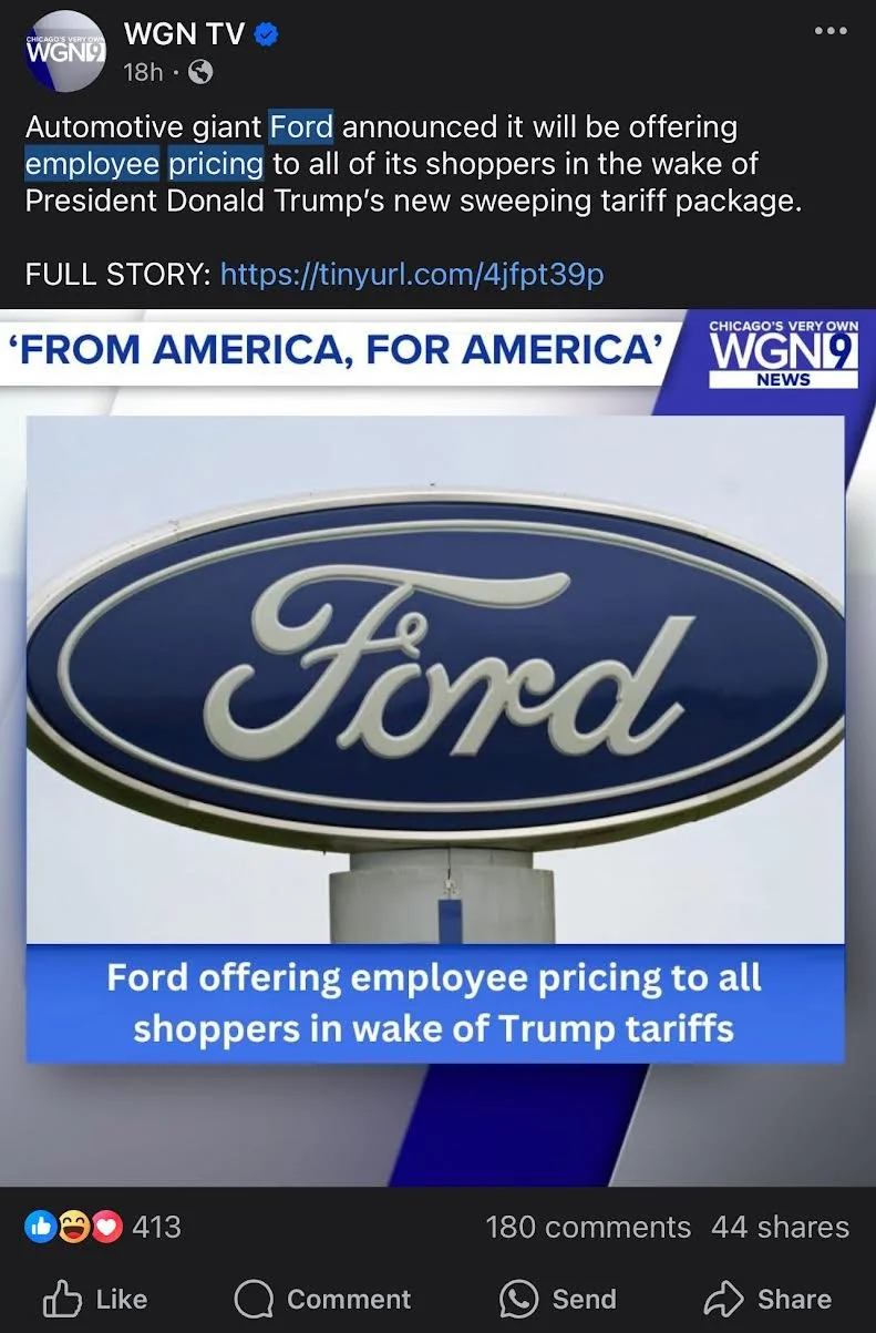 /Look at how these stations pump a Ford ad onto their social media. Carmakers offer “Employee Pricing” all the time as a gimmick to sell cars.