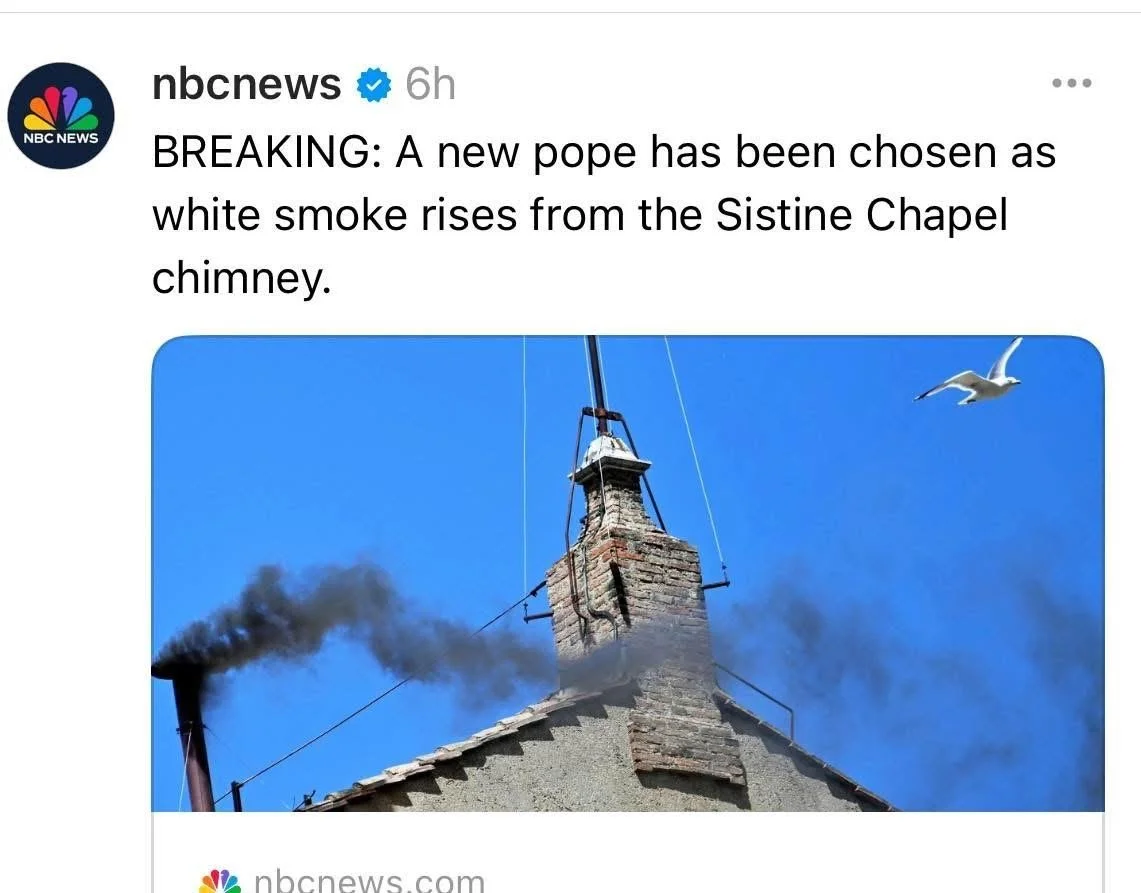 May 12, 2025 Black and White May 12, 2025/ Scott Jones Can someone tell NBC News, that is not white smoke?