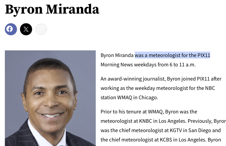 A check of the WPIX website and you see in Miranda’s bio it says he “was a meteorologist for PIX.”