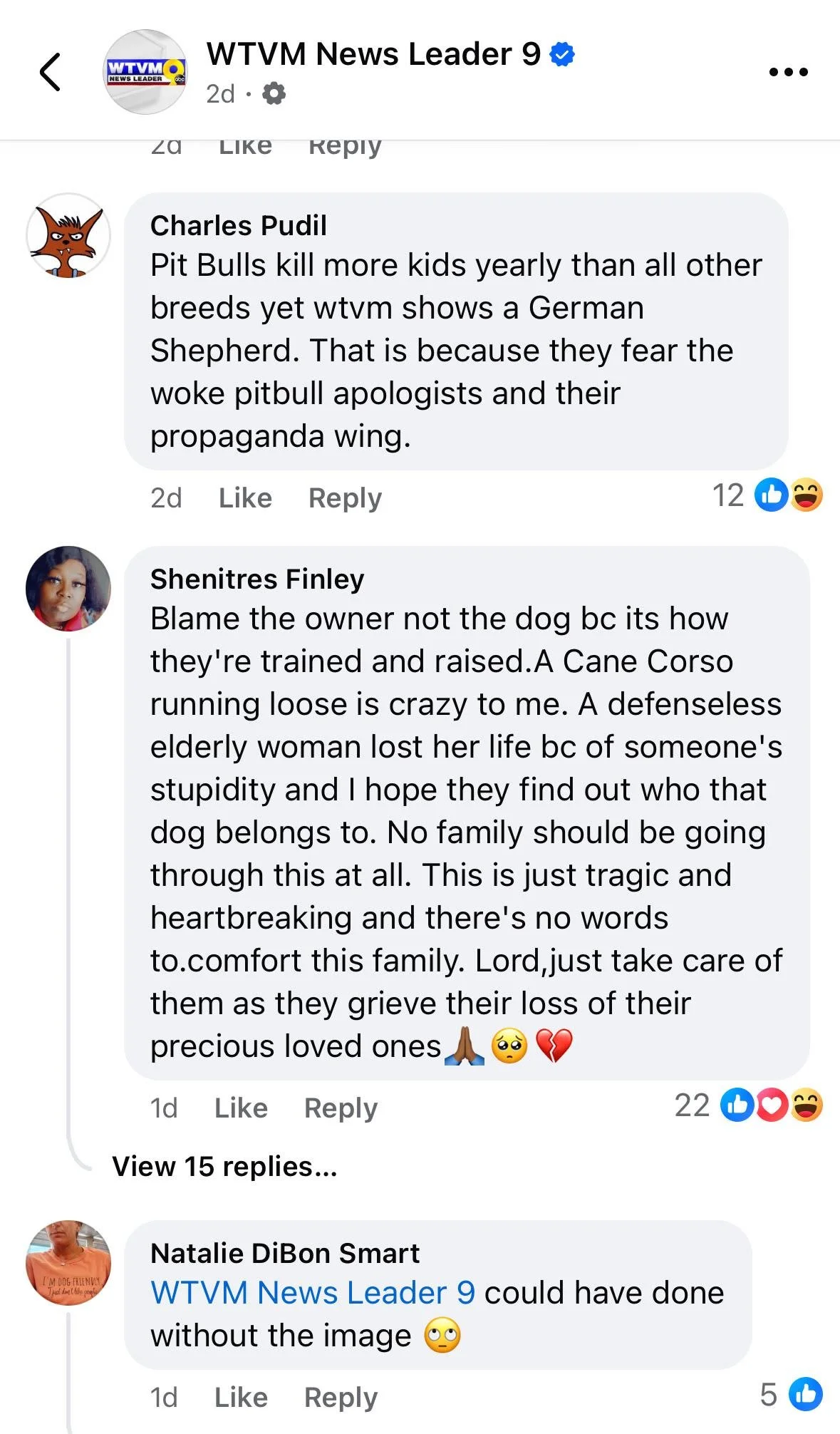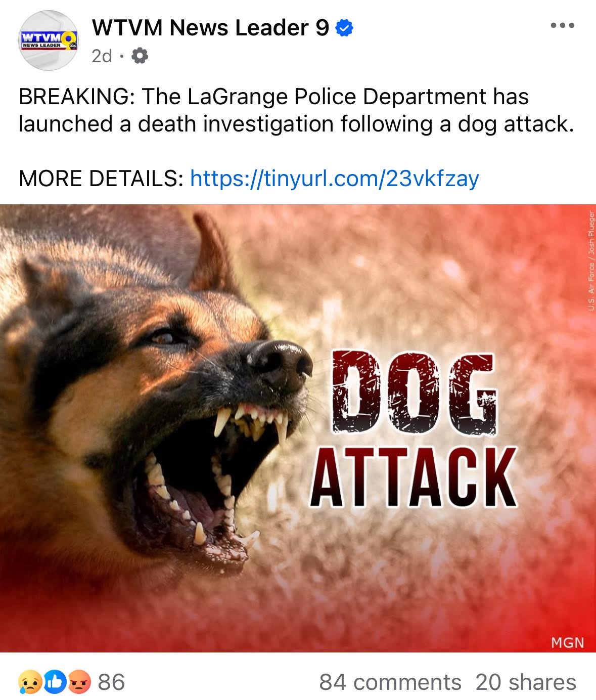 The station’s graphic was a bit insensitive and it was also wrong. The two dogs involved in the attack were a pit bull and the other was believed to be a Cane Corso.