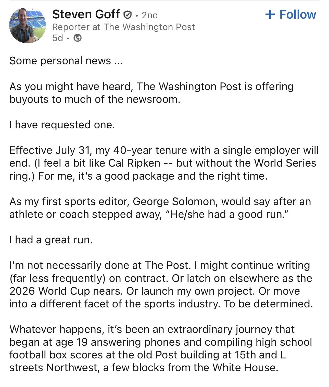 The Washington Post has started offering up buyouts.