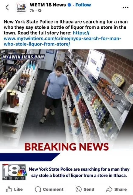 I get that the crime news might be a bit thin in Elmira/Ithaca, NY, but how this was considered news is anyone’s guess.